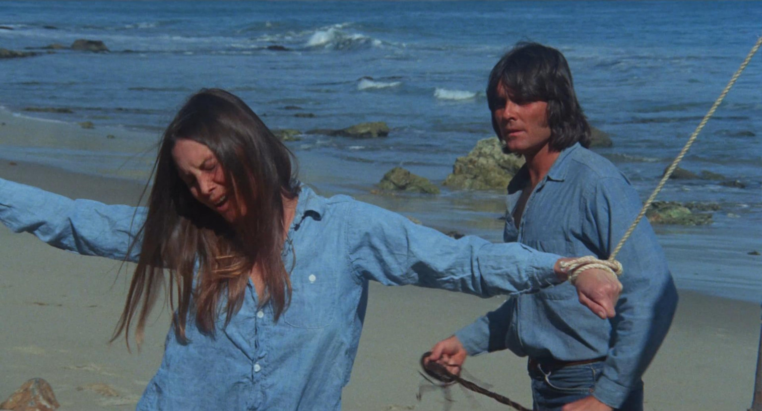 Barbara Leigh (the original Vampirella model, for comic book nerds) is tied between 2 posts and whipped to bait a patrol boat, in this early 70s prison island flick.
