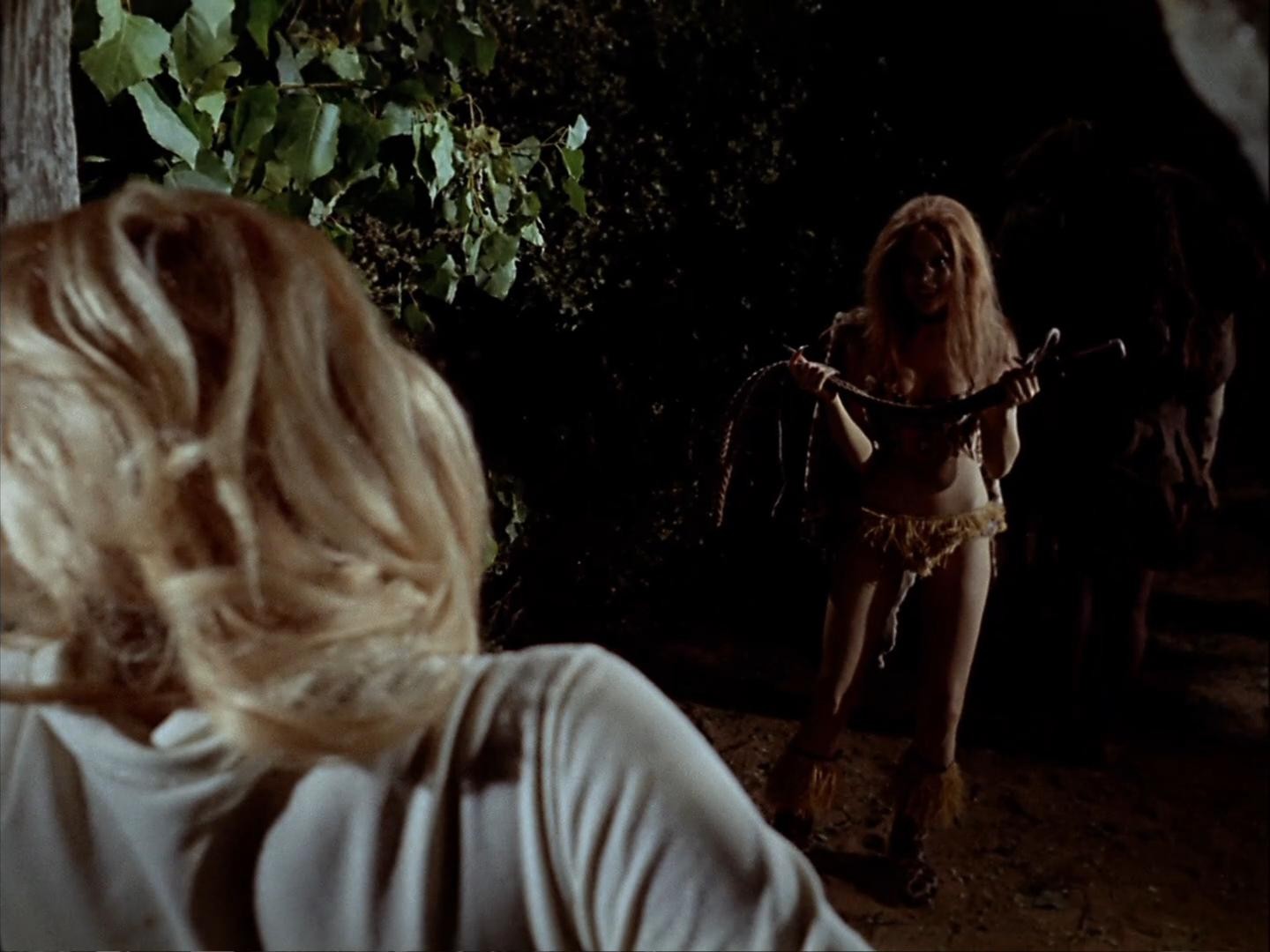 Exceptional Spanish horror director, Armando de Ossorio (Fangs of the Living Dead), brings us an interesting (if nothing else) pair of whipping scenes in Night of the Sorcerers, original title, La noche de los brujos. Bárbara Rey is the first victim, who is then possessed by a demon and becomes the antagonist for victim #2, Loreta Tovar. I enjoy providing alternate scenes where possible, so there are both the censored and uncut versions.