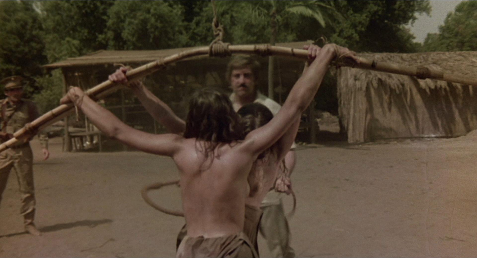 Barbara Leigh (the original Vampirella model, for comic book nerds) is tied between 2 posts and whipped to bait a patrol boat, in this early 70s prison island flick.